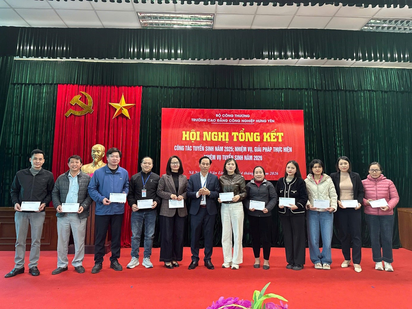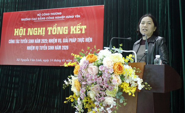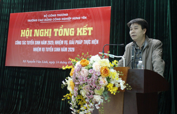 Thực hiện kế hoạch công tác năm học, ngày 14/01/2026, tại Cơ sở chính, Trường Cao đẳng Công nghiệp Hưng Yên đã tổ chức Hội nghị tổng kết công tác tuyển sinh năm 2025; nhiệm vụ, giải pháp thực hiện nhiệm vụ tuyển sinh năm 2026. Hội nghị nhằm đánh giá toàn diện kết quả đạt được, chỉ ra những tồn tại, hạn chế, đồng thời đề ra định hướng, giải pháp nâng cao hiệu quả tuyển sinh trong thời gian tới