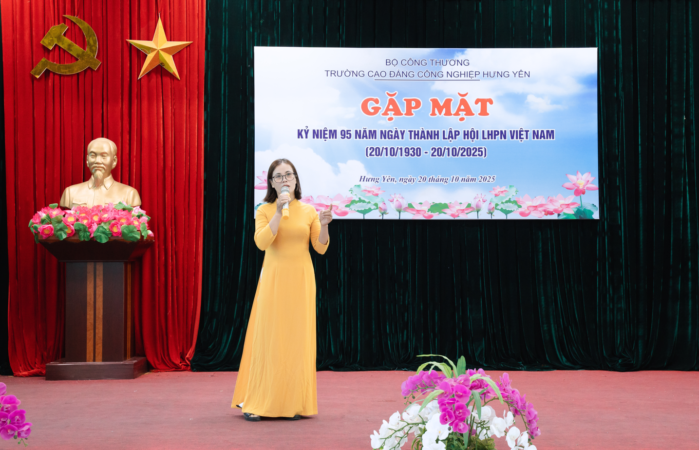 Tại buổi gặp mặt, các đại biểu đã cùng nhau ôn lại truyền thống 95 năm xây dựng và trưởng thành của Hội Liên hiệp Phụ nữ Việt Nam – tổ chức đại diện cho ý chí, nguyện vọng và quyền lợi chính đáng của phụ nữ cả nước và đã khẳng định vai trò quan trọng của phụ nữ trong sự nghiệp xây dựng và phát triển đất nước, cũng như trong sự phát triển chung của Trường Cao đẳng Công nghiệp Hưng Yên.
