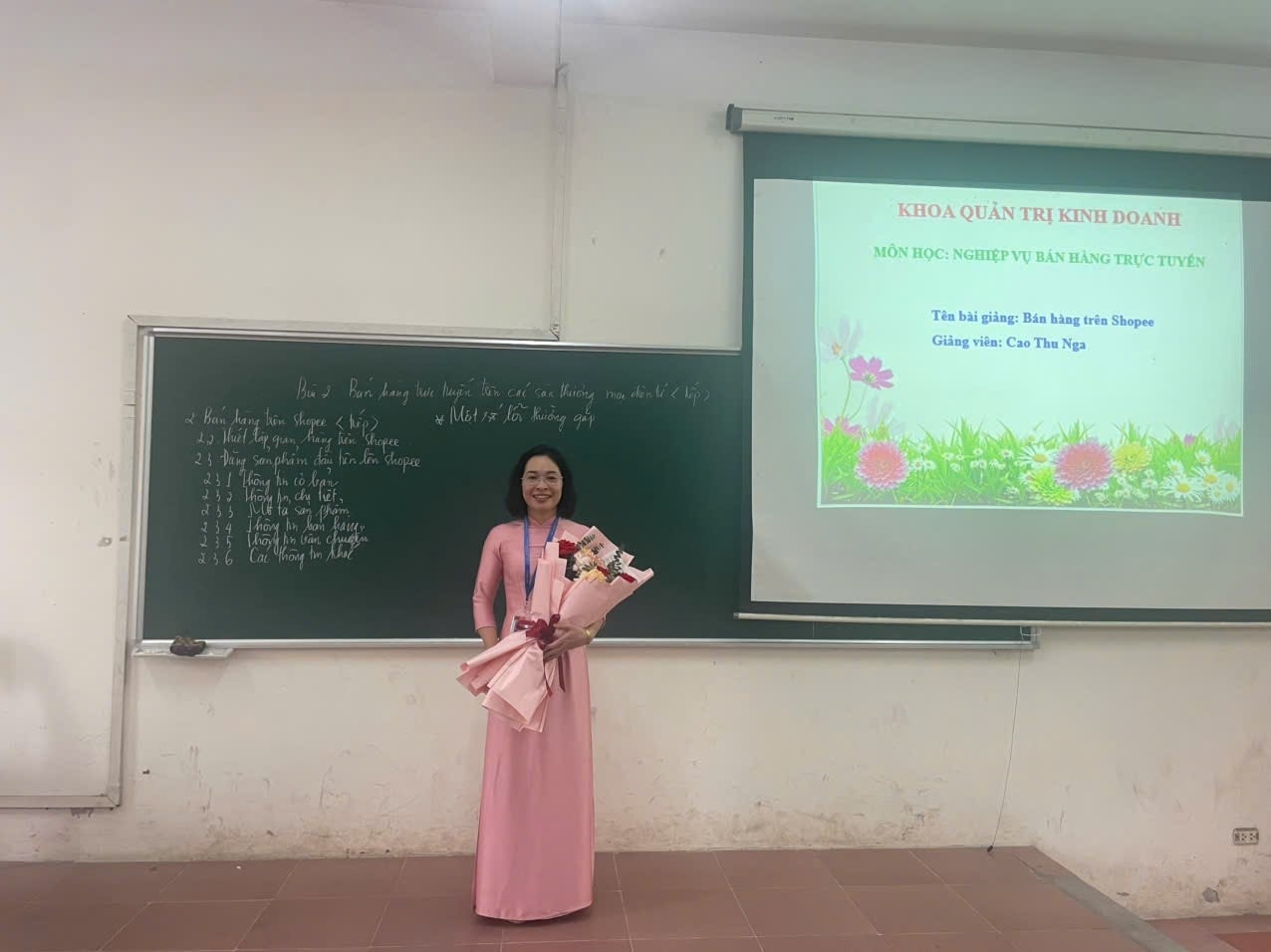 Nhà giáo Cao Thu Nga – Giảng viên khoa Quản trị kinh doanh phát biểu