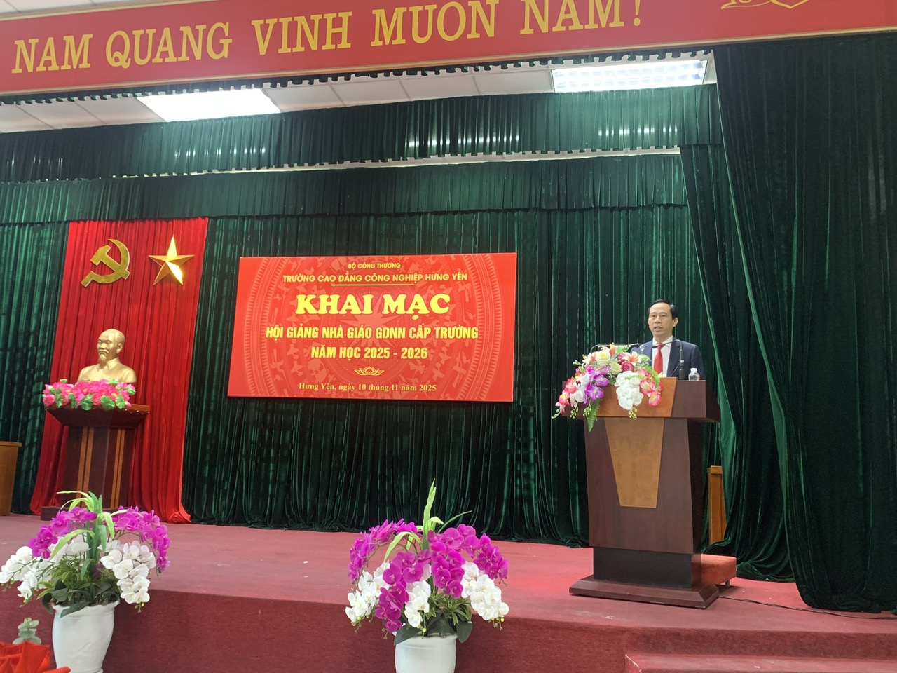 Sáng ngày 10/11/2025, tại cơ sở chính, Trường Cao đẳng Công nghiệp Hưng Yên long trọng tổ chức Lễ khai mạc Hội giảng Nhà giáo GDNN cấp trường năm học 2025-2026. Sự kiện nằm trong chuỗi các hoạt động thiết thực chào mừng kỷ niệm 60 năm thành lập trường và 43 năm ngày Nhà giáo Việt Nam (20/11/1982 – 20/11/2025), nhằm tạo không khí thi đua sôi nổi trong toàn thể đội ngũ nhà giáo, cán bộ và học sinh – sinh viên.